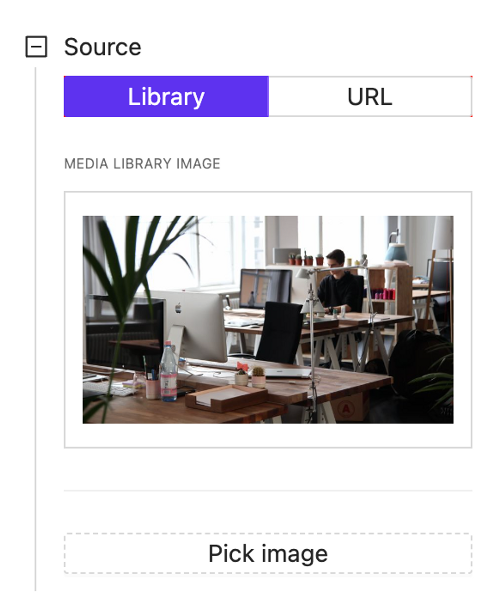 Image elements allow rendering images from the project media library or external URL.
